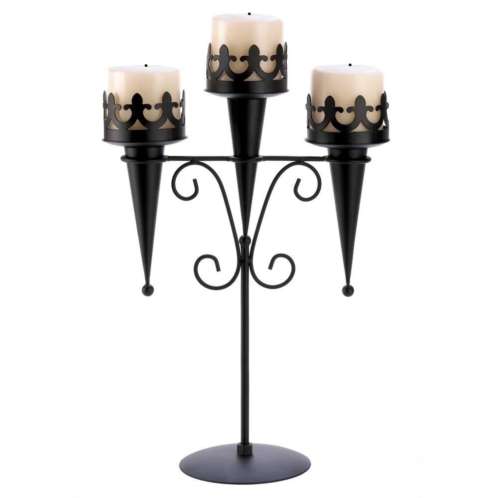 • As a fascinating focus piece or a dramatic décor accent, this stately stand creates a lasting impression! Deep black finish accentuates every shapely detail and creates stunning contrast to a triple candle display.