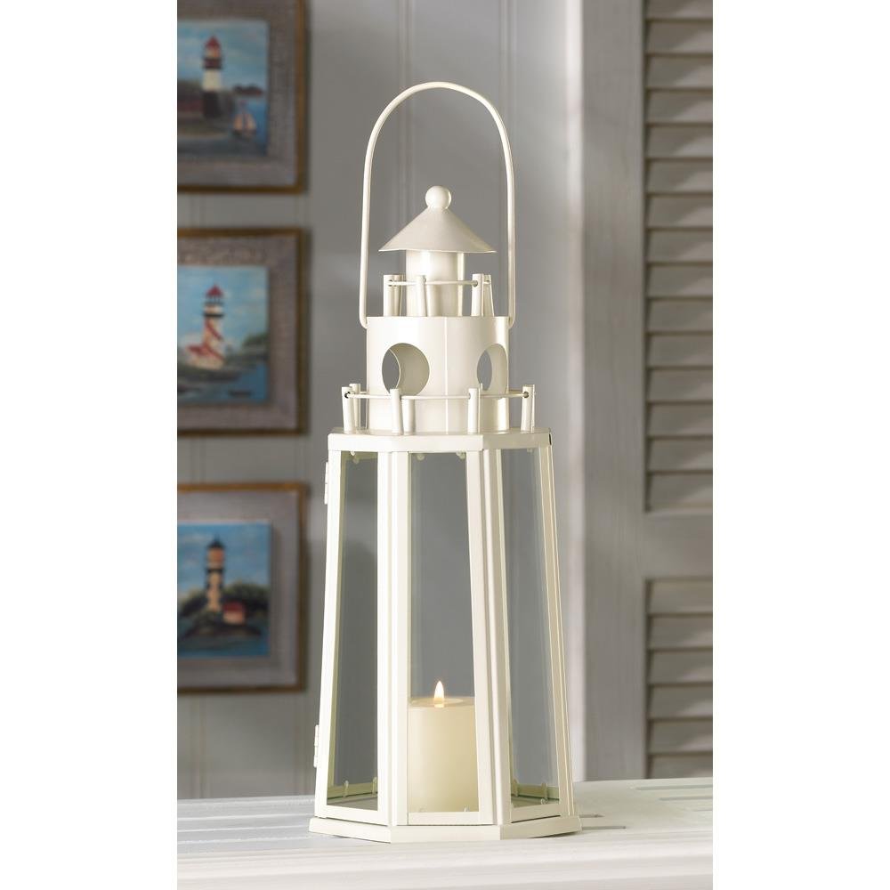 Decorate your home like a sleepy seaside village with this charming lighthouse lantern. With glass window panes, a contemporary galvanized metal top, and metal handle for easy hanging this lantern is both sturdy and chic. Place a candle or LED of your choice inside the lantern to illuminate your space in a soft and serene glow. Use it to create a centerpiece for parties or special events, display on a countertop or coffee table, or to accent beach themed décor - available in a variety of styles and colors!